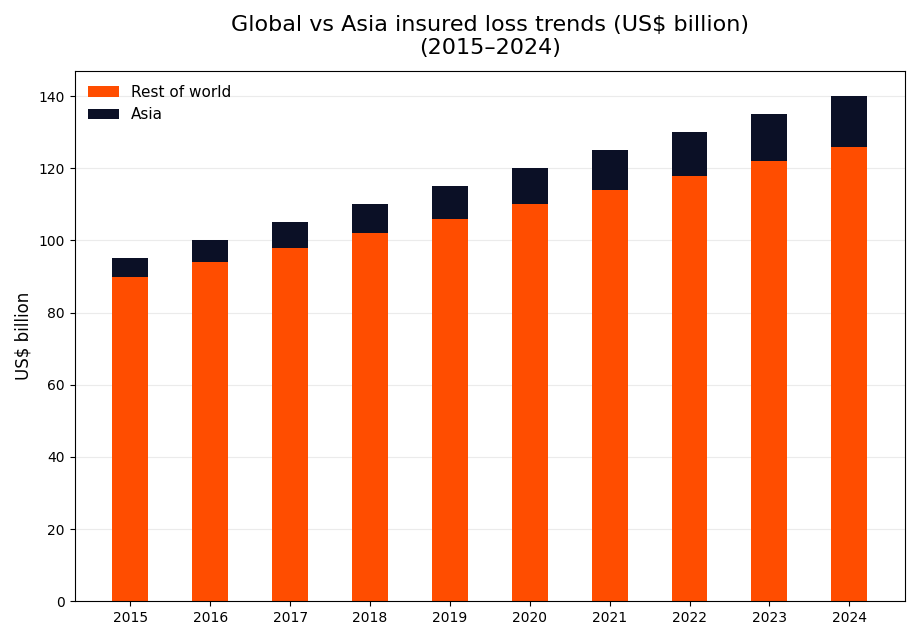 The frequency and severity of climate-driven disasters in Asia - floods, wildfires, typhoons - are increasing, leading to record-breaking insured losses year after year. Traditional insurance models, built on historical risk data, are struggling to price risk in a world where yesterday’s weather patterns no longer predict tomorrow’s catastrophes. Insurers are also finding it more difficult to keep pace with the accelerating frequency and severity of climate-driven events.